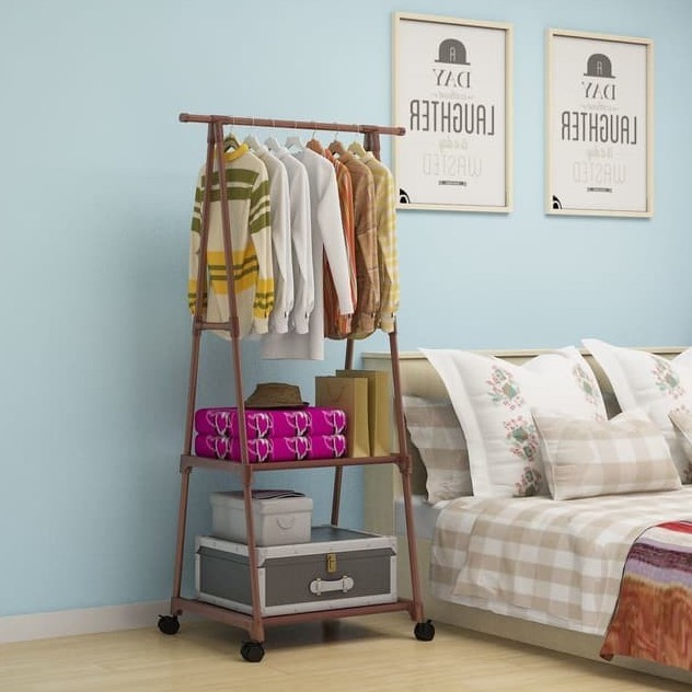 Lemari rak portable gantung pakaian plastik baju sepatu rakitan kecil ada roda rakit aluminium g7h.